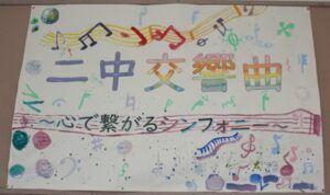 音楽祭がいよいよ来週月曜日に迫ってきました。今年のスローガンは「二中交響曲~心で繋がるシンフォニー~」です。多くの楽器によって構成され、さまざまな音色を奏でることで創り上げられる交響曲のように、一人一人の歌声や心を合わせた合唱を作り上げるよう表現を工夫しています。