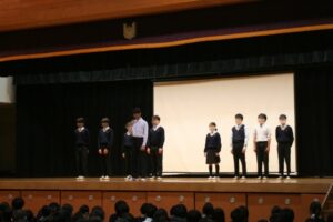 11月10日(月)の生徒会朝礼で、後期生徒会と各専門委員会の活動目標とスローガンが発表されました。生徒自らが、主体的に自主的に、よりよい小金井二中を作るために積極的な話し合いが行われています。生徒会と専門委員会の活動を全生徒が支え、実践していきます。