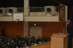 12月25日(木)は2学期の終業式でした。2学期は1年の中で最も長く、多くの行事がありました。音楽祭や2回の定期考査、そして各学年で校外学習や職場実習、職場体験、移動教室や修学旅行などがあり、忙しい日々の中でたくさんの成長が感じられました。